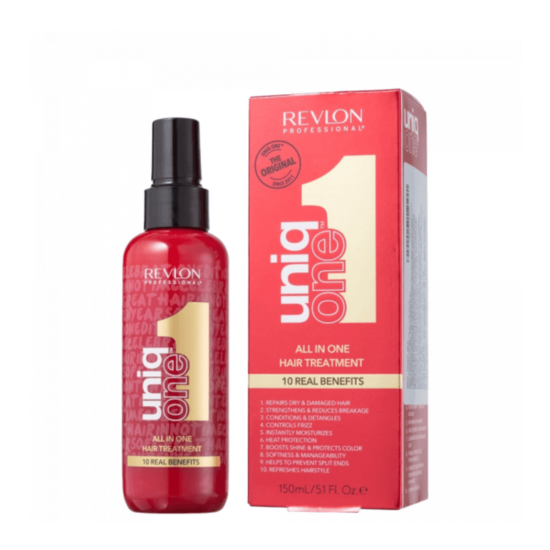 Com o Leave-in Revlon Uniq One os fios ficam hidratados instantaneamente, fortalecidos e sem frizz. Além disso, conta com proteção térmica e da cor, deixando o cabelo com brilho, suave e sem pontas duplas.